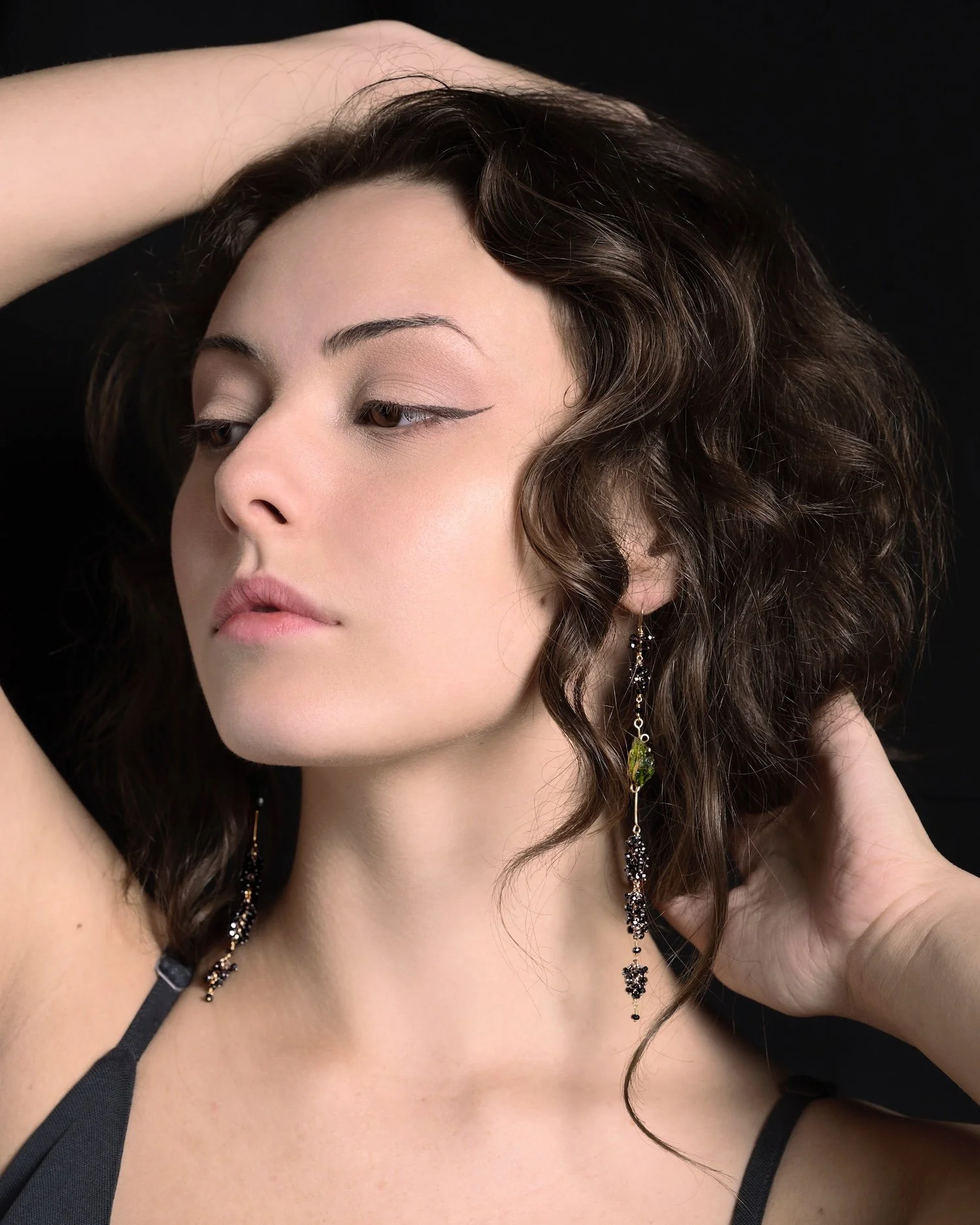 Gifts Under $5000 Categories: All Ready to Ship Gifts Under $5000 Gifts Under $2000 Gifts Under $1200 Gifts Under $600 Style Earrings Necklaces Bracelets Gold Silver Mixed Metals Collections Elementals Fire Water Air Claire de Lune Pleiades Mira Sylphide Voyageuse Undina Fairmined Gold Made to Order All / Gifts Under $5000 All Ready to Ship Gifts Under $5000 Gifts Under $2000 Gifts Under $1200 Gifts Under $600 Style Collections Made to Order Quick View Voyageuse Collection: Desma Necklace | 18K Gold, Sterling Silver, Enhydro Quartz and Green Tourmaline $3,625.00 Quick View Voyageuse Collection: Desma Pendant Necklace | 18K Gold, Enhydro Quartz, Green Tourmaline, Peridot and Black Spinel $2,165.00 Quick View Voyageuse Collection: Pellia Bracelet | 18K Gold, Sterling Silver and Vesuvianite $1,600.00 Quick View Voyageuse Collection: Desma Drop Earrings | 18K Gold, Sterling Silver, Green Tourmaline and Enhydro Quartz $1,125.00 Quick View Voyageuse Collection: Leskea Double Strand Bracelet | 18K Gold, Sterling Silver and Chrome Diopside $1,655.00 Quick View Voyageuse Collection: Leskea Dangle Earrings | 18K Gold and Chrome Diopside $1,850.00 Quick View Voyageuse Collection: Pennata Dangle Earrings | 18K Gold, Sterling Silver, Black Spinel and Chrome Diopside $1,890.00 Quick View Voyageuse Collection: Leskea Drop Earrings | 18K Gold and Chrome Diopside $675.00 Quick View Sylphide Collection: Giselle Adjustable Necklace | Sterling Silver, Sillimanite and Geode $2,850.00 Quick View Pleiades Collection: Adelpha Pendant Necklace | 14K Fairmined Gold, Umba Sapphire and Champagne Zircon $1,879.00 Quick View Pleiades Collection: Atlas Pendant Necklace | 14K Fairmined Gold, Umba Sapphire and Champagne Zircon $1,404.00 Quick View Pleiades Collection: Taygeta Dangle Earrings | 14K Fairmined Gold, Umba Sapphire and Champagne Zircon $1,199.00 Quick View Pleiades Collection: Pleione Pendant Necklace | 14K Fairmined Gold, Umba Sapphire and Champagne Zircon $1,149.00 Quick View Elementals Fire Collection: Dysis Dangle Hoop Earrings | 14K Fairmined Gold, Zircon and Songea Sapphire $1,795.00 Quick View Elementals Fire Collection: Sunneva Chandelier Earrings | 14K Fairmined Gold Rhodolite Garnet Pyrope Garnet $1,168.00 Quick View Elementals Fire Collection: Alyona Necklace | 14K Fairmined Gold, Red Zircon and Songea Sapphire $1,097.00 Quick View Elementals Air Collection: Calandra Drop Earrings | Sterling Silver, Australian Opal and Quartz $495.00 Quick View Elementals Air Collection: Nephele Necklace | Sterling Silver, Australian Opal and Quartz $1,728.00 Quick View Elementals Air Collection: Silsia Double Drop Earrings | Sterling Silver, Australian Opal and Quartz $595.00 Quick View Elementals Water Collection: Sereia Dangle Earrings | Sterling Silver Grandidierite and Australian Opal $575.00 Quick View Elementals Water Collection: Amarina Necklace | Sterling Silver Aquamarine Australian Opal Grandidierite and Clear Quartz $1,175.00 Quick View Claire de Lune Collection: Salina Chandelier Earrings | Sterling Silver and Montana Sapphire $1,728.00 Quick View Claire de Lune Collection: Levanna Dangle Earrings | Sterling Silver and Montana Sapphire $1,248.00 Quick View Claire de Lune Collection: Vespara Double Drop Earrings | Sterling Silver and Montana Sapphire $816.00 Quick View Claire de Lune Collection: Hala Earrings | Sterling Silver and Montana Sapphire $816.00 Quick View Mira Collection: Allira Pendant Necklace | 14K Fairmined Gold, Sterling Silver, Herkimer Diamond $465.00 Quick View Mira Collection: Aralynn Pendant Necklace | 14K Fairmined Gold, Sterling Silver, Herkimer Diamond $475.00 Quick View Mira Collection: Lilura Pendant Necklace | 14K Fairmined Gold, Sterling Silver, Herkimer Diamond $475.00 Quick View Undina Collection: Vanora Chandelier Earrings | Oxidized Sterling Silver, Moonstone and Pearl $920.00 Quick View Undina Collection: Talulah Bracelet | Oxidized Sterling Silver and Peridots $395.00